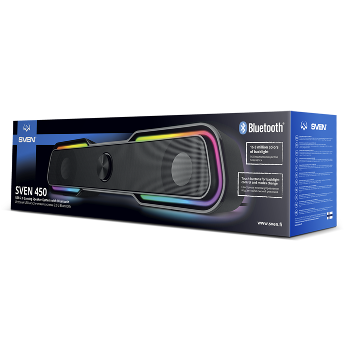 Black, USB, Bluetooth, power output 10Watt (RMS), touch control buttons, RGB light, USB powered,