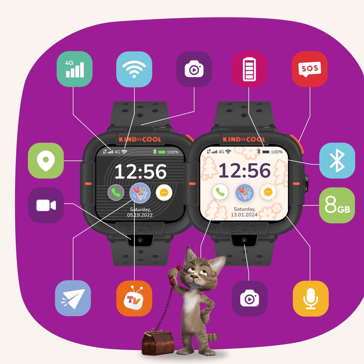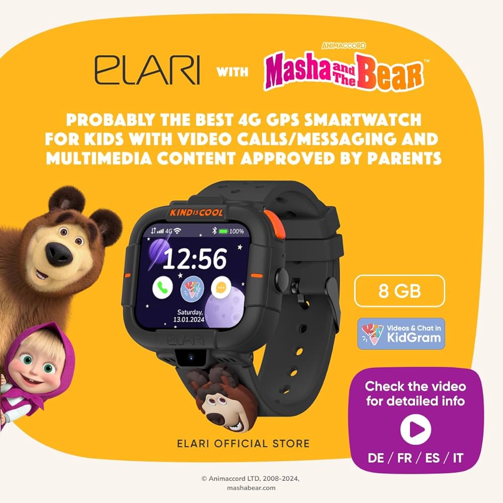 4G Kids Android Smart Watch Phone, GPS Tracker for Boys and Girls, KidGram messenger with safe content, 2-way audio and video calls, SOS button, 2 cameras, Amoled display, 8Gb memory, WiFi, Bluetooth, (Orange) IP57